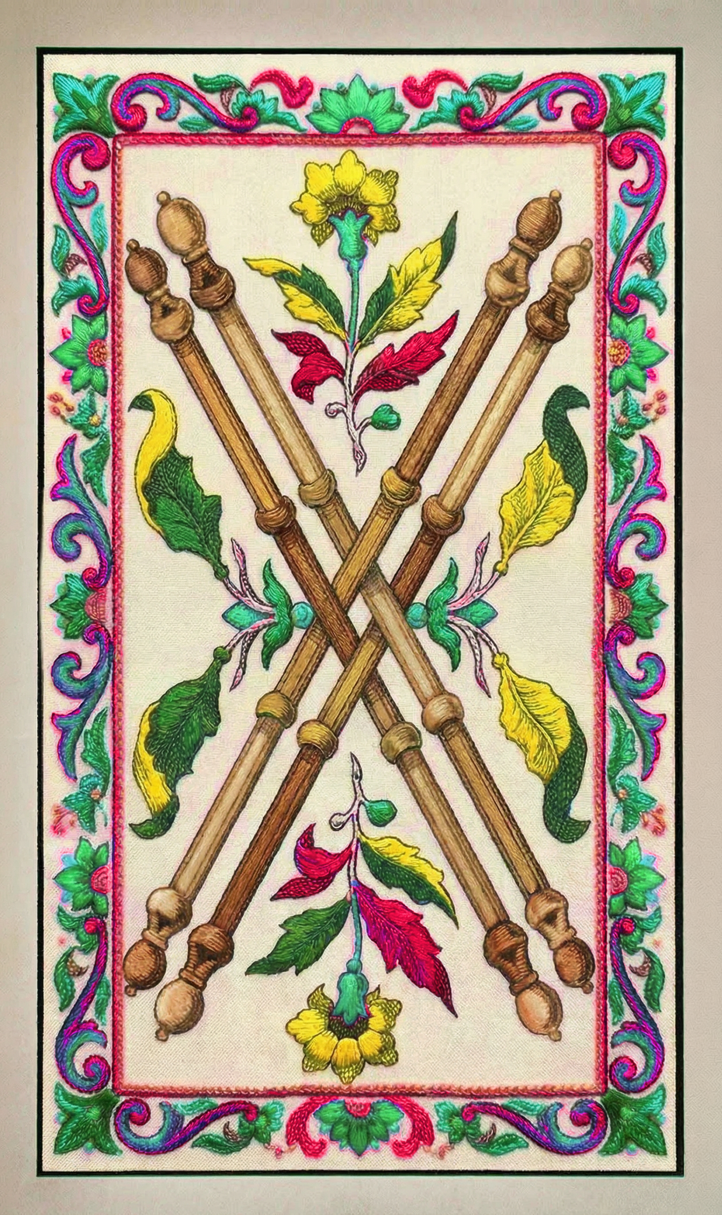 The Wands. Start your fool's journey where four paths cross in fire, take up your staff, brave wanderer, and let your will set the world ablaze.
